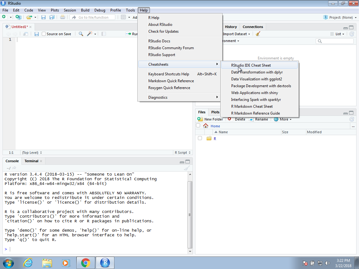 Although in this tutorial we often show how to use the mouse, we highly recommend that you memorize key bindings for the operations you use most. RStudio provides a useful cheat sheet with the most widely used commands. You can get it from RStudio directly: